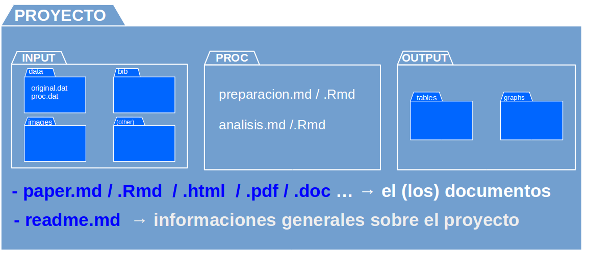 autocontenido: toda la información necesaria para la reproducibilidad se encuentra en la carpeta raíz o directorio de trabajo.